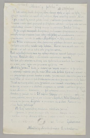 Odezwa patriotyczna wzywająca do walki o niepodległą i demokratyczną Polskę.