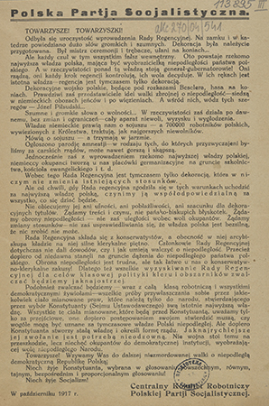 Odezwa potępiająca powołanie i fasadowość Rady Regencyjnej.