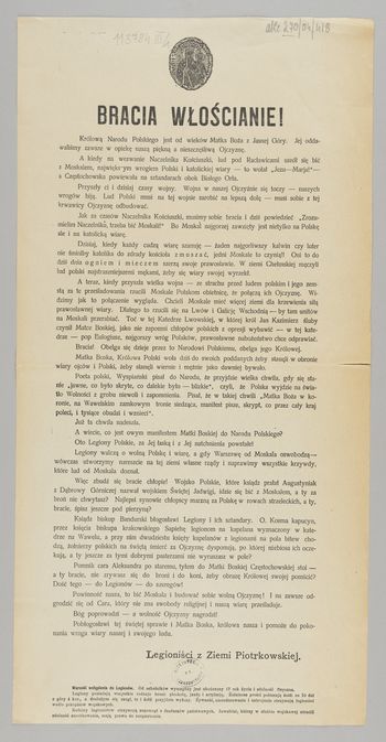 Incipit: Królową Narodu Polskiego jest od wieków [...]