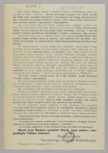 Data na druku: Warszawa, d. 22 sierpnia 1917 r.