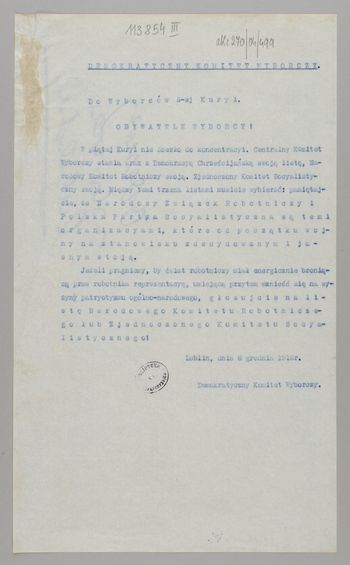 W nagłówku i pod tekstem: Demokratyczny Komitet Wyborczy.