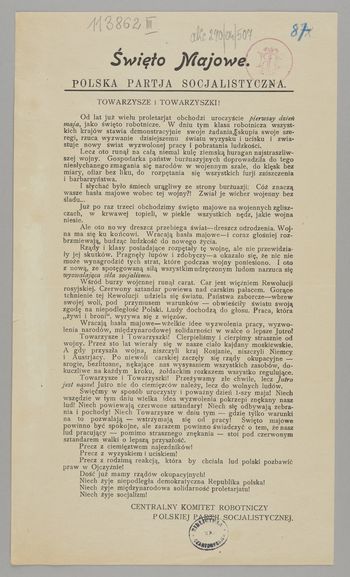 Odezwa nawołująca do uroczystych obchodów święta 1 Maja.