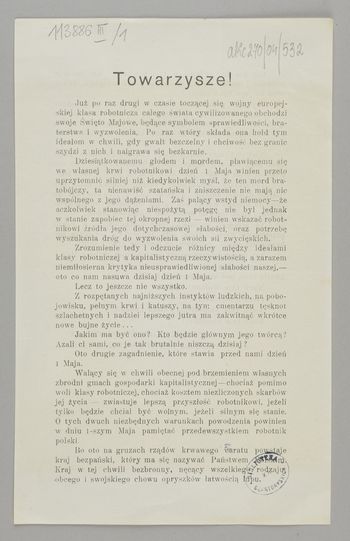 Odezwa z okazji zbliżającego się święta 1 Maja.