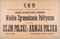 Zawiadomienie o wiecu politycznym nt sejmu polskiego i polskiego wojska.