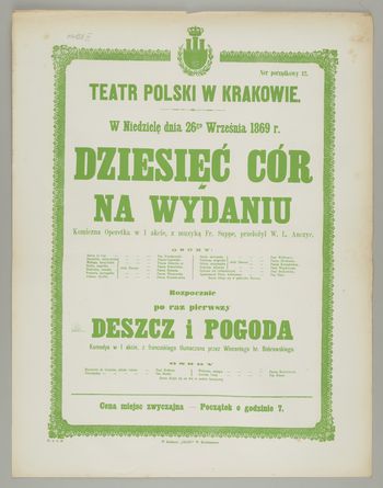 Zawiera także: "Deszcz i pogoda Komedya w 1 akcie, z francuskiego tłumaczona przez Wincentego hr. Bobrowskiego".