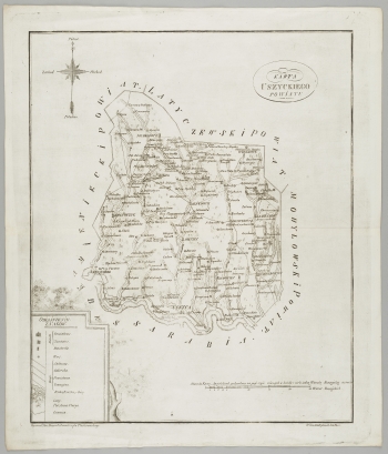 W lewym górnym rogu 8-rumbowa róża kompasowa opisana: "Północ.", "Wschod.", "Południe.", "Zachod.".