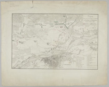 Zaznaczone m.in.: miejscowości, sieć hydrograficzna, mosty, drogi, obszary leśne, łąki, pola uprawne, zróżnicowane kolorami rozmieszczenie polskiej i rosyjskiej piechoty i kawalerii; na terenie Warszawy sieć ulic i 26 obiektów.