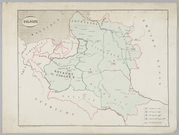 Pologne. - Paris : Régnier et Dourdet, [nie przed 1815]. - 1 mapa : litogr. kolor. ; 29,5x38,0 cm, na ark. 33,0x44,0 cm.