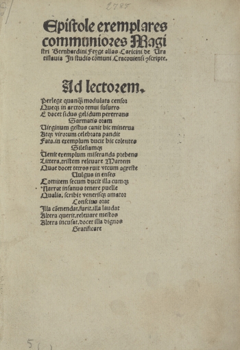 Epistolae exemplares. - Leipzig : Stöckel Wolfgangus, [po 13 VIII] 1500. - [14] kart (sygnowanie A⁶, B-C⁴) ; 4°.