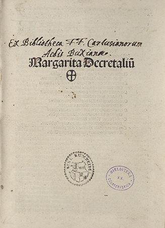 Annotationes Margaritarum Decretalium / Ed. Sebastianus Brant. - [Basel : Kessler Nicolaus, około 1496]. - [42] karty (sygnowanie a⁸, b-c⁶, d⁴, e-g⁶) ; 2°.