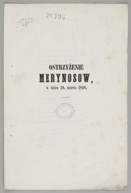 Ostrzyżenie merynosów w dzień 19 marca 1848. - [Lwów: wydawca nieznany, 1848] (Z wolnej prasy Inst. Stauropigijańskiego). - [1] karta złożona (4 strony) ; 23x15 cm.