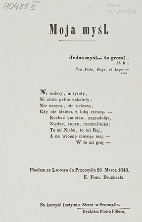 Na końcu uwaga "Na korzyść Instytutu Sierot w Przemyślu".