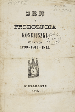 Zawiera: Sen Kościuszki z dramaciku dwuaktowego pod napisem Kościuszko nad Sekwaną, wznowionego na Teatrze Narodowym Krakowskim dnia 6. kwietnia 1848; Przeczucia Kościuszki z dramaciku Pierwsza miłość Kościuszki wznowionego na Teatrze Narodowym Krakowskim w dniu 13. kwietnia 1848.