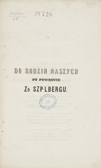Do rodzin naszych po powrocie ze Szpilbergu. - [Lwów : wydawca nieznany, 1848] (Drukiem Piotra Pillera). - [1] karta złożona (4) s. ; 22x14 cm.