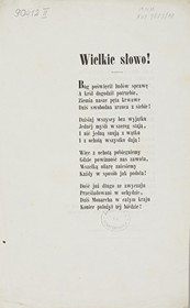 Wielkie słowo! - [Lwów : wydawca nieznany, 1848] (Z drukarni Instytutu Stauropigiańskiego). - [1] karta ; 23x15 cm.