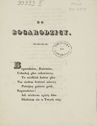 Do Bogarodzicy. - [Miejsce nieznane : wydawca nieznany, 1848]. - [4] strony ; 15x11 cm.