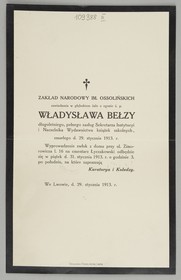 Zawiadomienie o pogrzebie na cmentarzu Łyczakowskim we Lwowie.