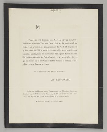 Zawiadomienie o pogrzebie na cmentarzu Ivry-sur-Seine (Île-de-France).