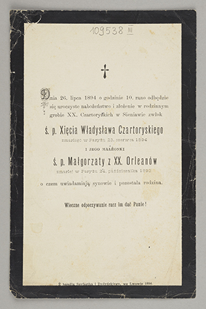 Zawiadomienie o złożeniu w rodzinnych kryptach kościoła w Sieniawie.
