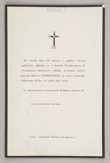 Zawiadomienie o nabożeństwie żałobnym.