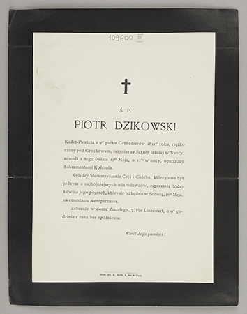 Zawiadomienie o pogrzebie na cmentarzu Montparnasse.