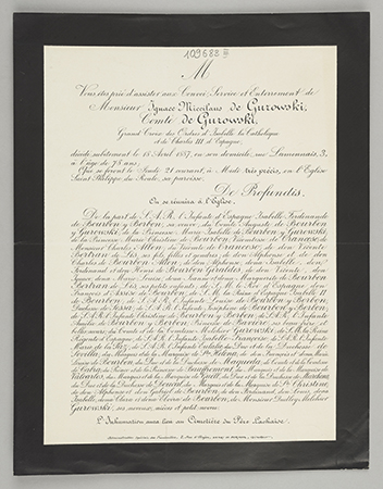 Zawiadomienie o pogrzebie na cmentarzu Père Lachaise.