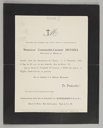 Zawiadomienie o pogrzebie na cmentarzu Montmorency.