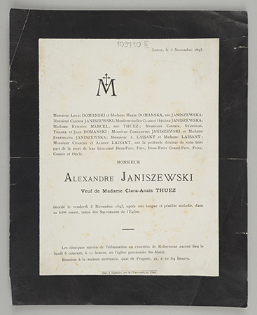 Zawiadomienie o pogrzebie na cmentarzu de Robermont.