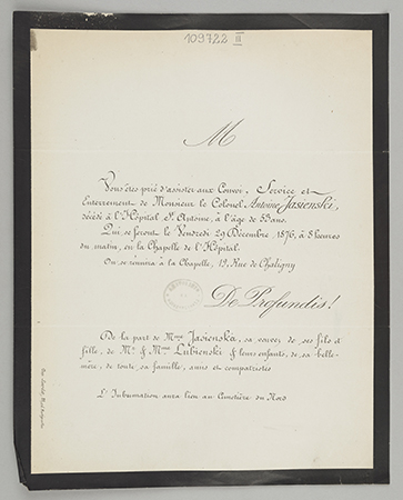 Zawiadomienie o pogrzebie na cmentarzu du Nord.