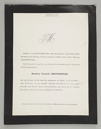 Zawiadomienie o pogrzebie na cmentarzu Montmorency.