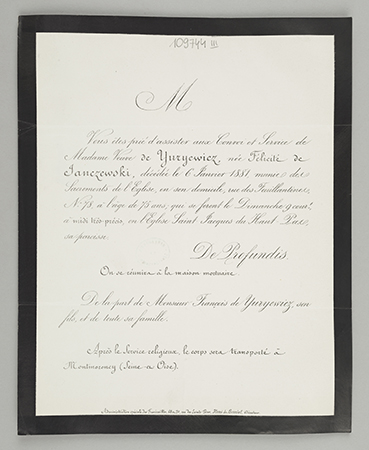 Zawiadomienie o pogrzebie na cmentarzu Montmorency.