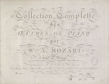 Tektura, papier zielony, na okładzinie przedniej czerwony szyldzik ze złotym szlaczkiem z tytułem: "Oeuvres de Mozart Vol. 4".