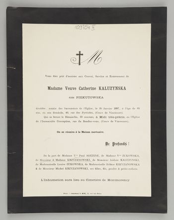 Zawiadomienie o pogrzebie na cmentarzu Montmorency.