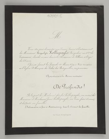 Zawiadomienie o pogrzebie na cmentarzu Montmorency.