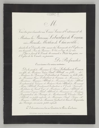 Zawiadomienie o pogrzebie na cmentarzu Pére-Lachaise.