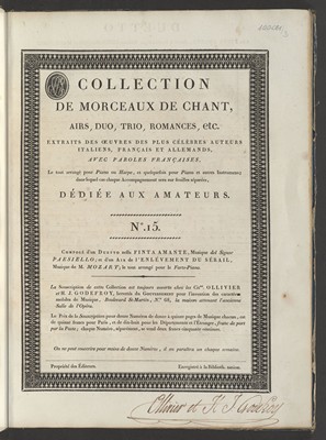 (Collection de morceaux de chant : airs, duo, trio , romances,etc. : extraits des oeuvres [...] avec paroles françaises : arrangé pour piano ou harpe ; Nr 15)