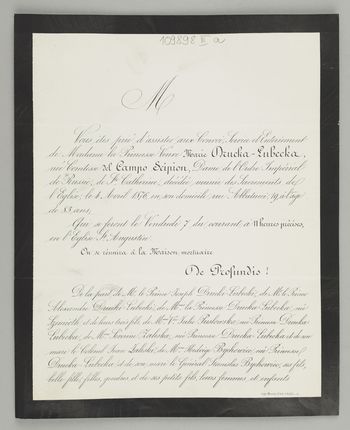 Zawiadomienie o pogrzebie na cmentarzu Pere-Lachaise.