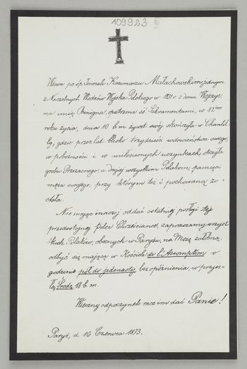 Zawiadomienie o nabożeństwie żałobnym.