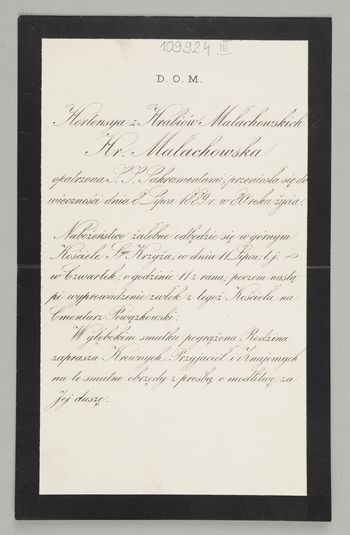 Zawiadomienie o pogrzebie na Cmentarzu Powązkowskim.
