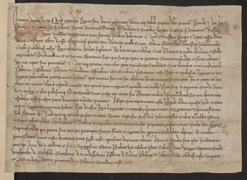 Dokument jest podklejony z powodu licznych drobnych uszkodzeń pergaminu i częściowego zbutwienia. Zakładki brak, jak również brak śladów po przywieszeniu pieczęci.