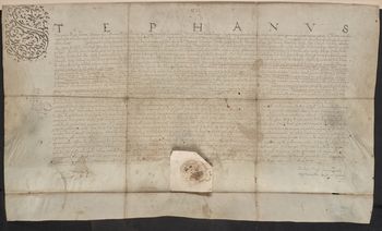 Pieczęć króla Stefana Batorego wyciśnięta w papierze przyklejonym u dołu pergaminu (M. Gumowski, Pieczęcie królów nr 66).