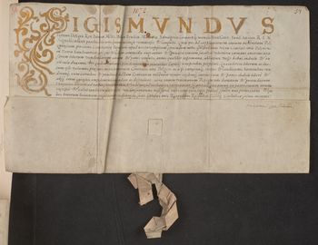 Pieczęci króla Zygmunta III brak, pozostał po niej pergaminowy pasek.