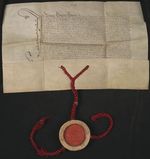 Kniaziowie Olgimunt Holszański Iwan Horodecki Gleb Dymitrowicz i Jan Butawdowicz kustosz krakowski poręczają za kniazia Żedywida syna Chodorowego przed królem polskim Władysławem Jagiełłą