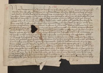 Na odwrocie: streszczenie [XV i XVII w.]; "1389 die s. Luciae virginis"; "Neskoua"; "Inductum in librum et continetur fol. XL"; "Inductum in librum prius Nro [?] [znaki]"; "Ex scatula 11 sub numero 10 [cyfry przekreślone] 2"; "5"; "P. P."; "+"; "8"; "41".