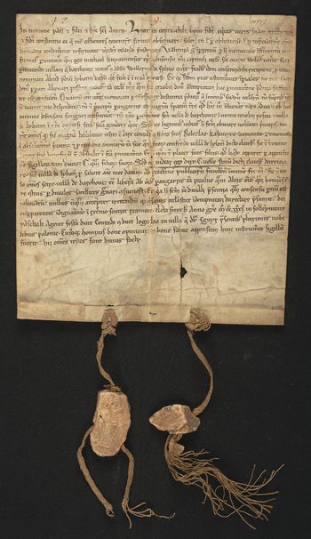 Z czterech pieczęci pozostały ułamki dwóch pieczęci zawieszone na lnianych sznurkach; dwóch pieczęci brak, pozostały nacięcia po sznurkach.