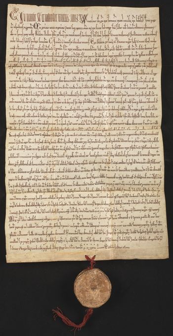 Pieczęć majestatyczna, dwustronna króla czeskiego Wacława I zawieszona na czerwonym, jedwabnym sznurku.