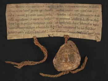 Z trzech pieczęci zawieszonych na pergaminowych paskach pozostała jedna, kanclerza Iwona (Fr. Piekosiński, Pieczęcie nr 22); po drugiej pieczęci, księcia Leszka Białego, pozostał sznurek, po trzeciej - nacięcia w pergaminie po sznurku.
