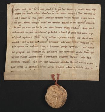 Na odwrocie: 2 streszczenia [XVI i XVII w.]; "De Ruz et de Swece"; "Susceptus per officium sabbatto ante dominicam Misericordiae anno domini 158 nono. A. P. Acticatus"; "Lit. D No 14to"; "1252"; "1mo"; "Libertas a podimne"; "E"; "N 61"; "No 5⁰"; "23".