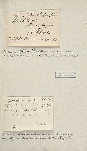 Byron Georg Gordon. poeta, fragm. pieśni "Hebrew Melodies", b.d. s. 127-128. Alexander zu Hohenlohe-Waldenburg-Schillingsfürst do Izabeli [z Flemingów] Czartoryskiej ks., 8 III 1822 s. 13-14, druk; Mahlmann [poeta niem.] b.d. s. 17-19, wiersz; Matthisson [Fryderyk poeta] do NN, b.d. s. 3; Richter [Jean Paul pisarz] do NN, b.d. s. 23; Schlegel [August Wilhelm von, poeta] do NN, b.d. s. 1; Tiedge [Christopher August, poeta] do NN, b.d. s. 7.