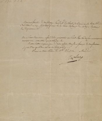 Napoleon Bonaparte. Listy do następujących: -Aleksander I car, 1809 oraz cytat Mowy o Narodowości Polaków, wygłoszonej na posiedzeniu Tow. Przyj. Nauk 3 V 1831 przez Kazimierza Brodzińskiego pisany przez NN, s. 25, kopia. Druk: Kazimierz Brodziński, O Narodowości Polaków. Warszawa 1831. -[Vivant] Denon [Dominik rys. franc., członek Franc. Akademii Sztuk Pięknych], b. d. s. 21-22. -Bonaparte Louis brat, w sprawie zawiadomienia o śmierci Józefa Sułkowskiego, 1798 s. 29-30. -Neufchateau Francois de, Prezes Senatu fran., b. d. s. 7.